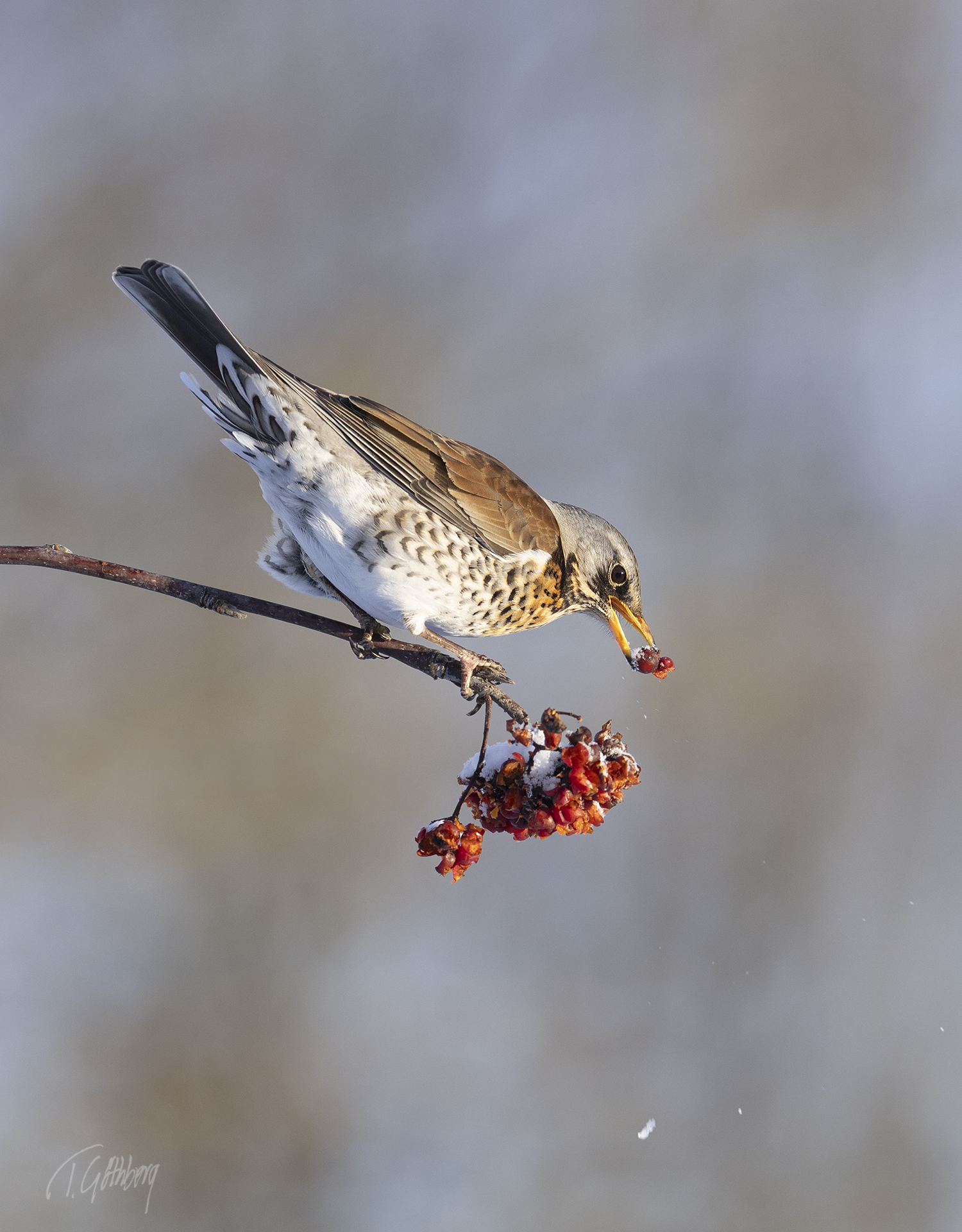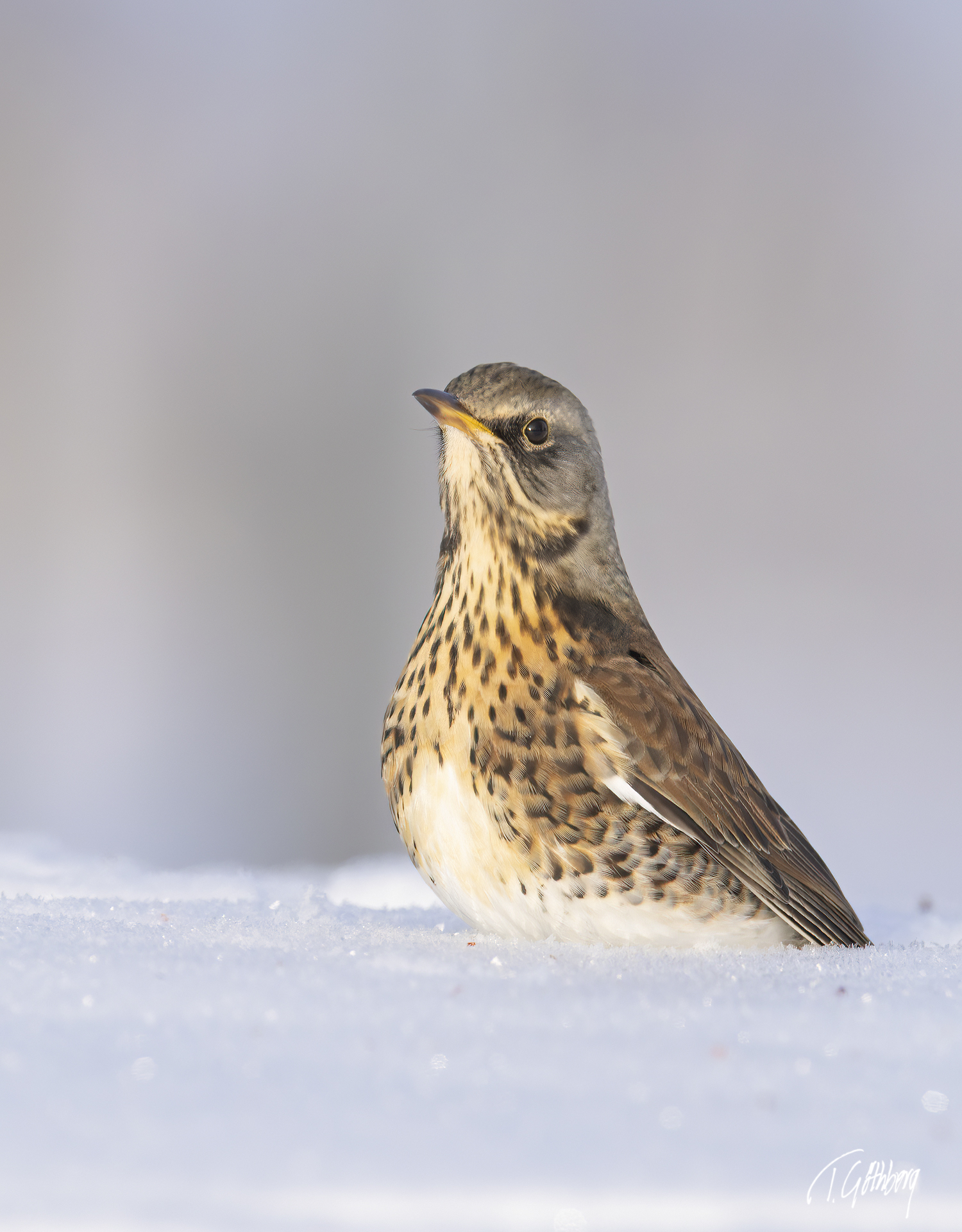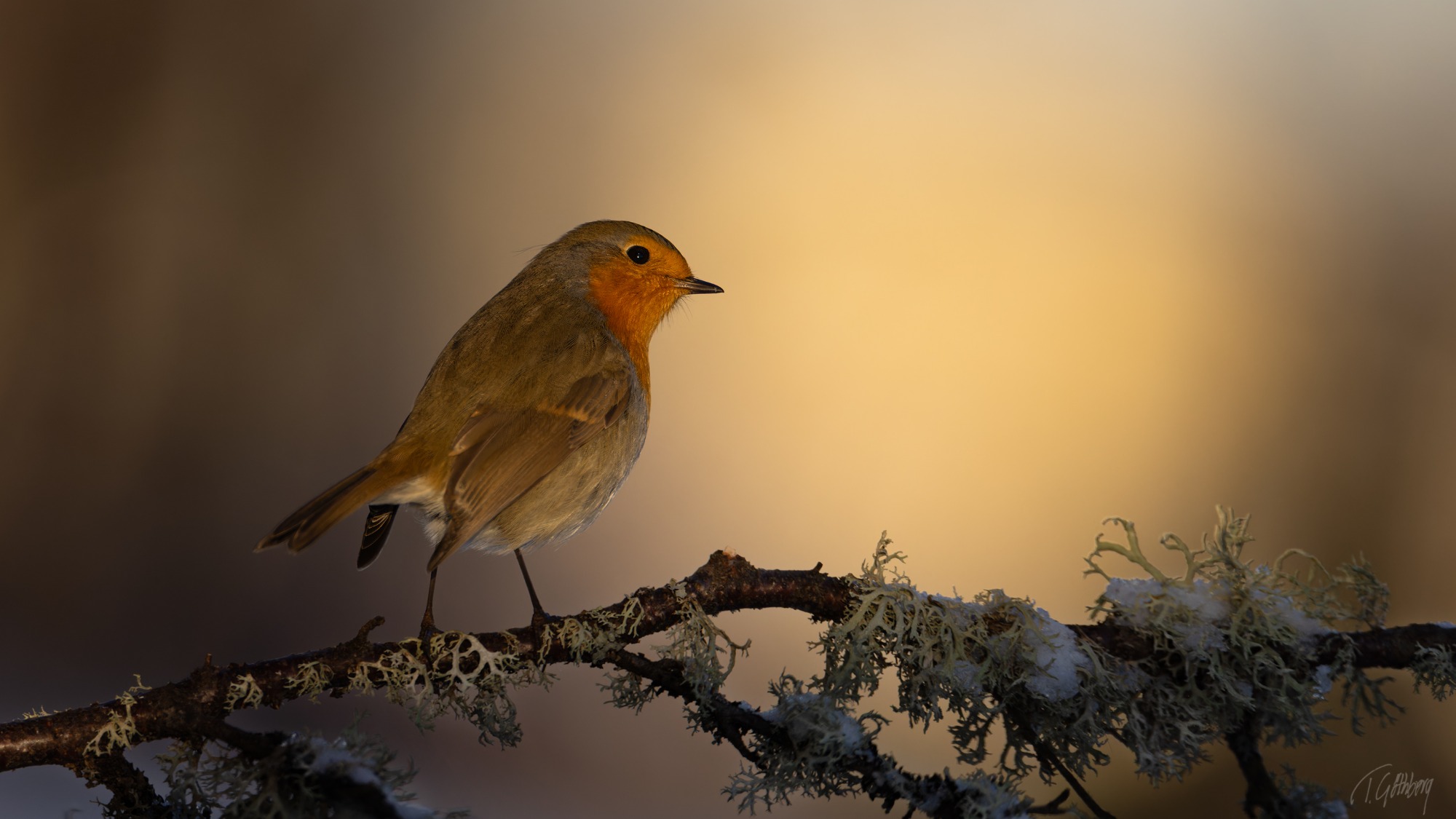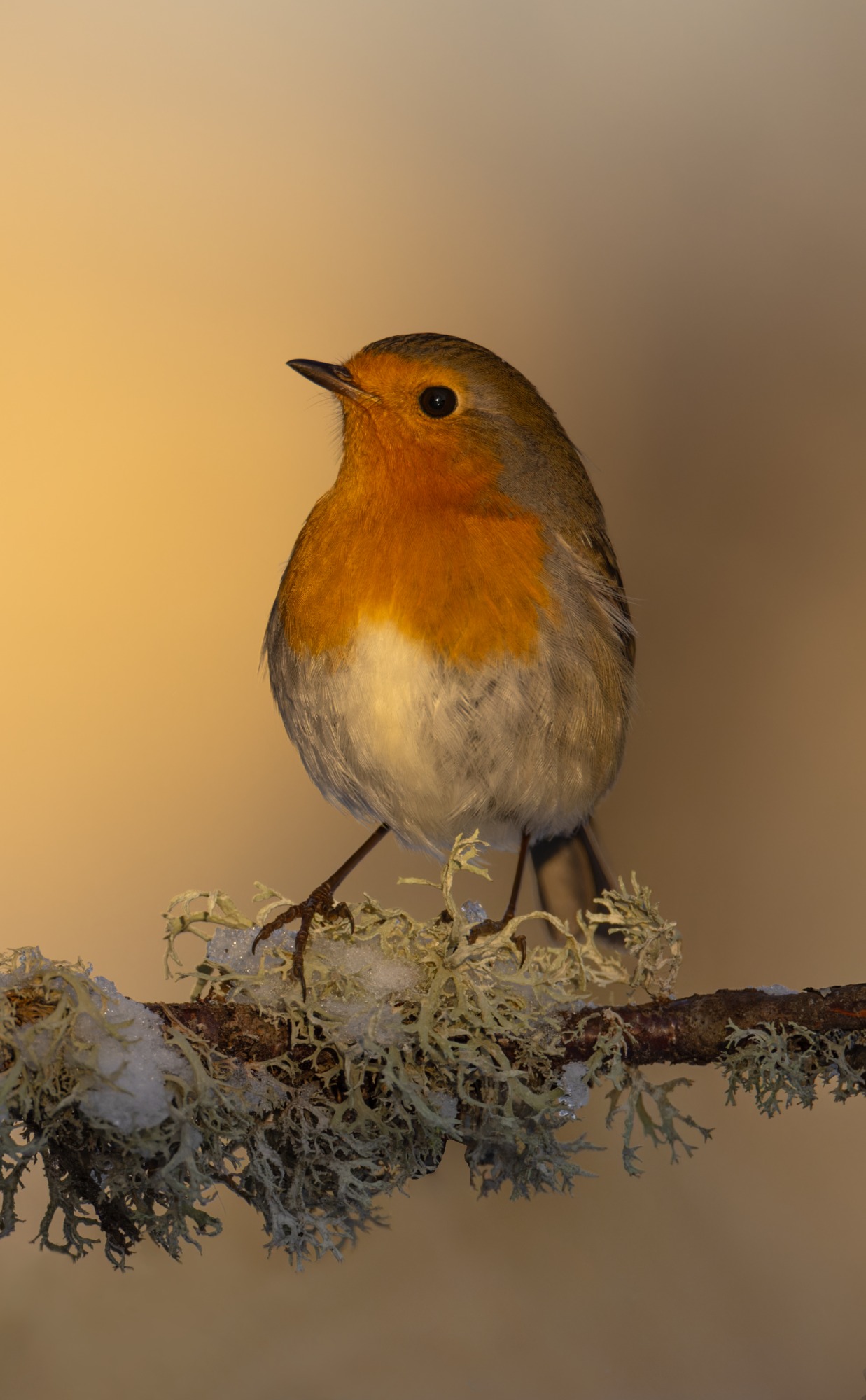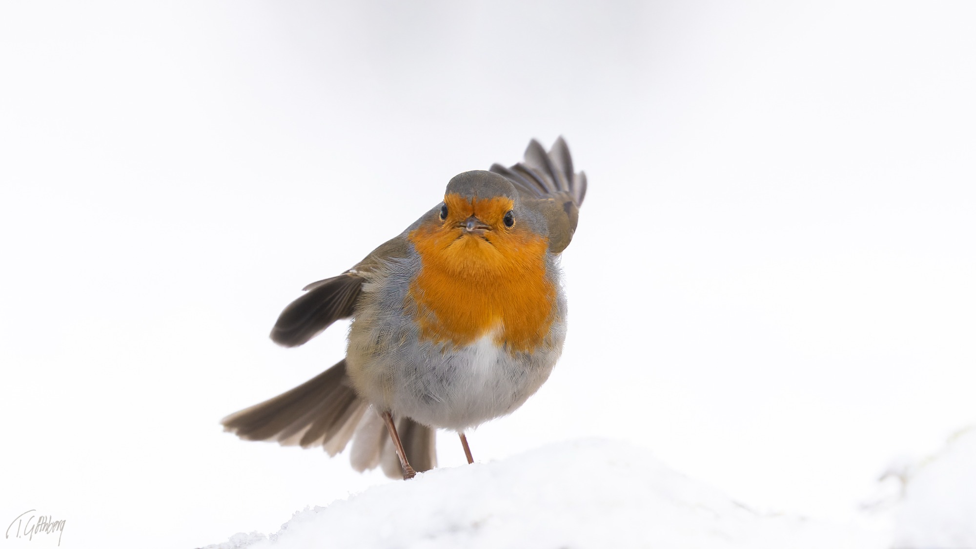 Snön återvänder och våren sätts på paus. Rödhaken ser ut att protestera och längtar efter värmande strålar.