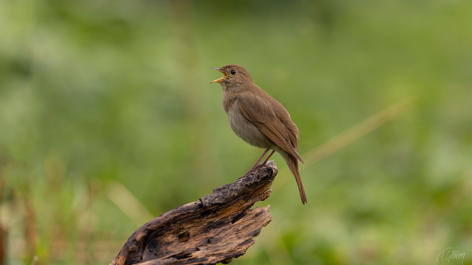 I maj, då näktergalen återtar sitt revir, fyller han natten med sin intensiva sång. Den kraftfulla rösten bär långt, ibland flera kilometer.