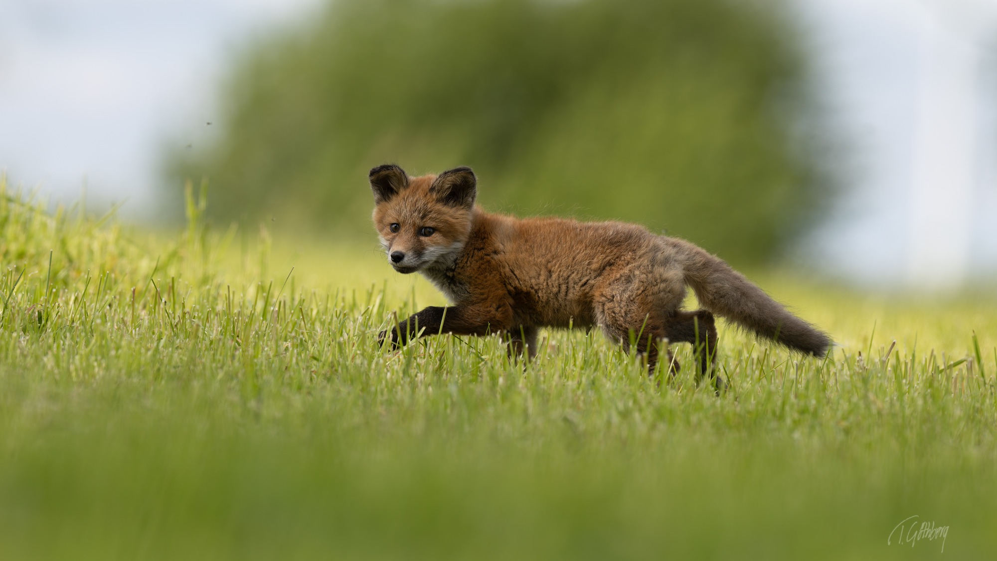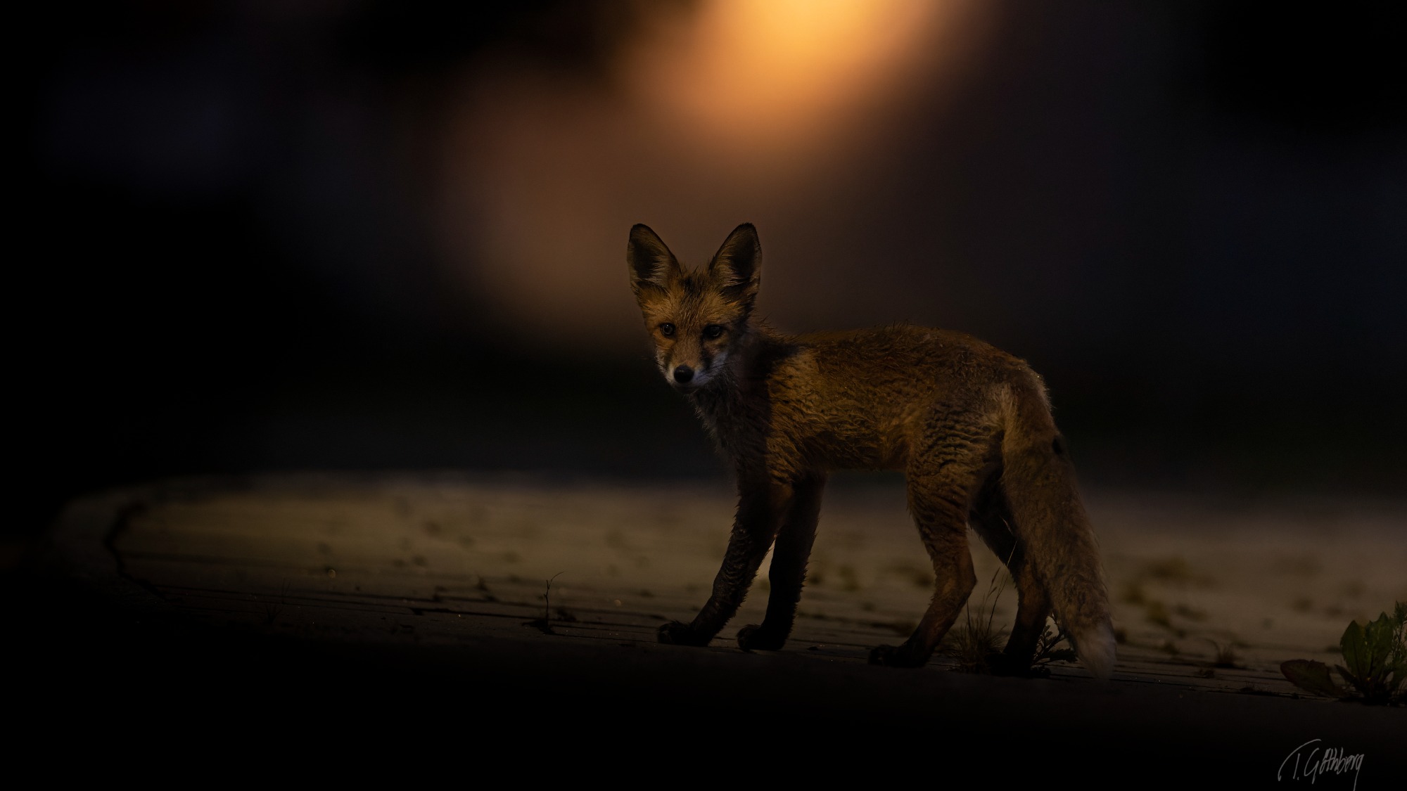 Rävungen tvekar mellan att stanna kvar eller springa mot lyan. Kanske är det klokast att välja det säkra framför det osäkra.