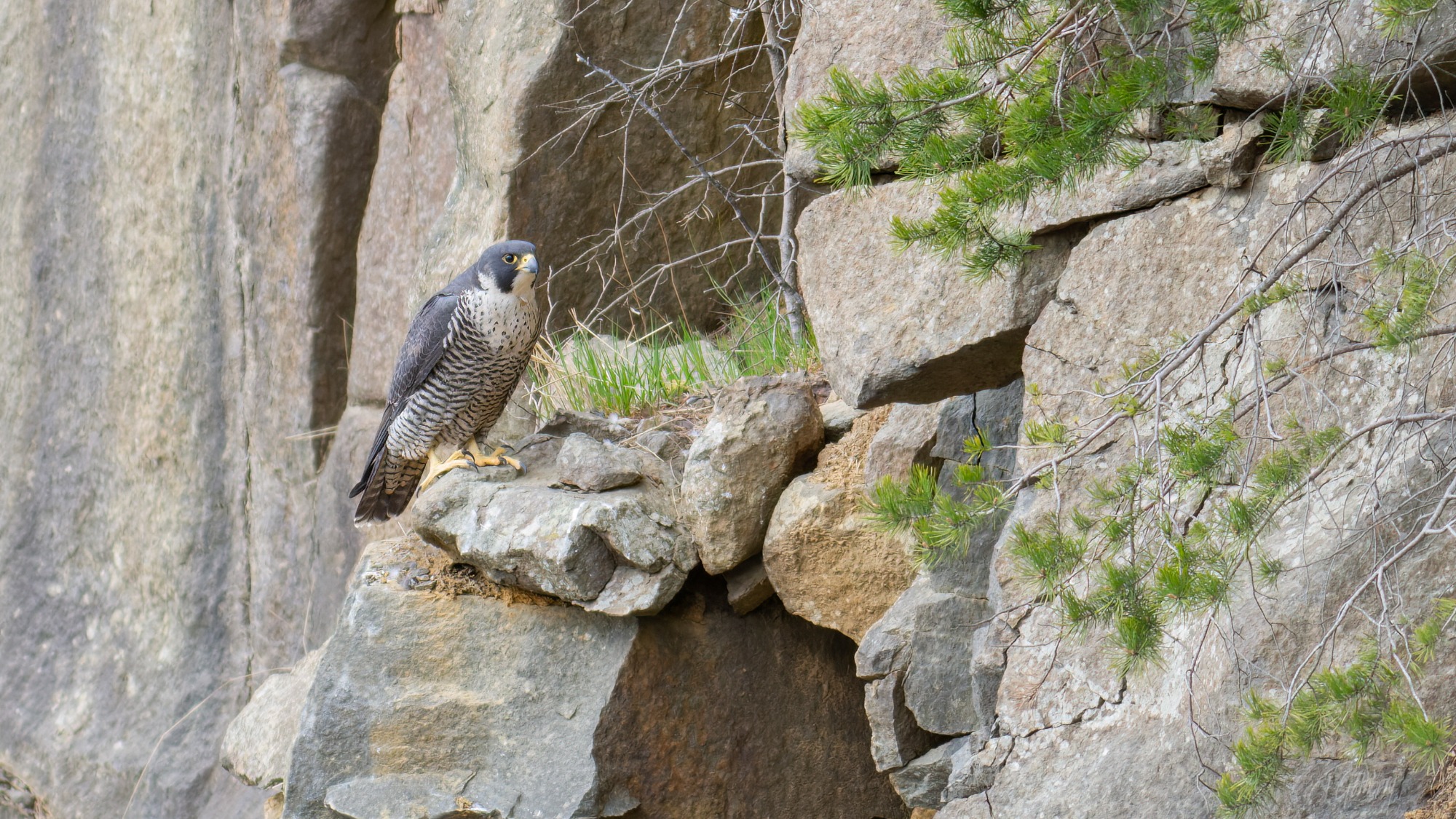 Pilgrimsfalken trivs på klipphyllor och i branter, där den finner skydd mot många av naturens faror.