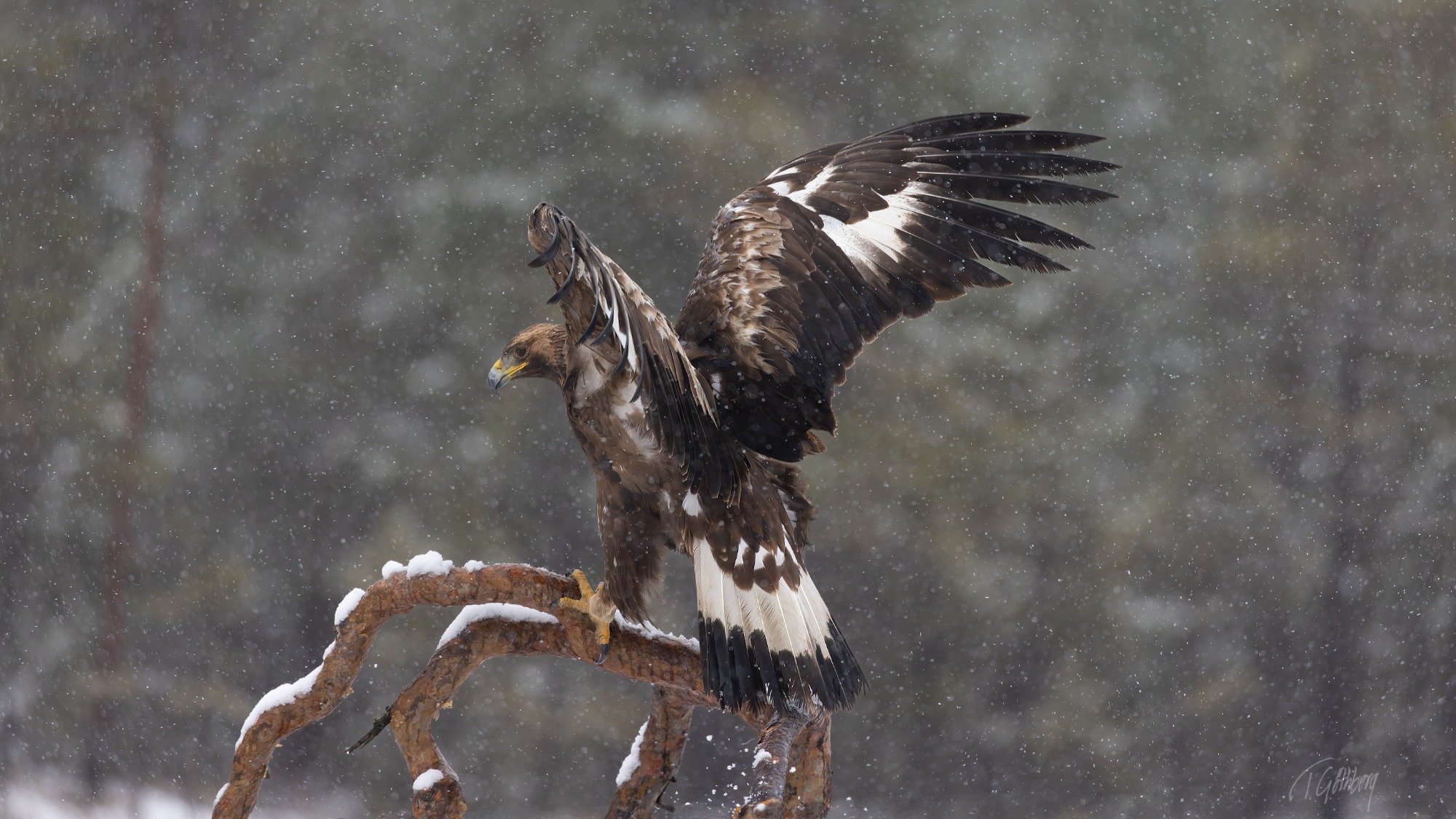 Efter en lyckad jakt flyger falken med sitt byte till favoritplatsen, där den hoppas finna ro från konkurrenternas blickar.