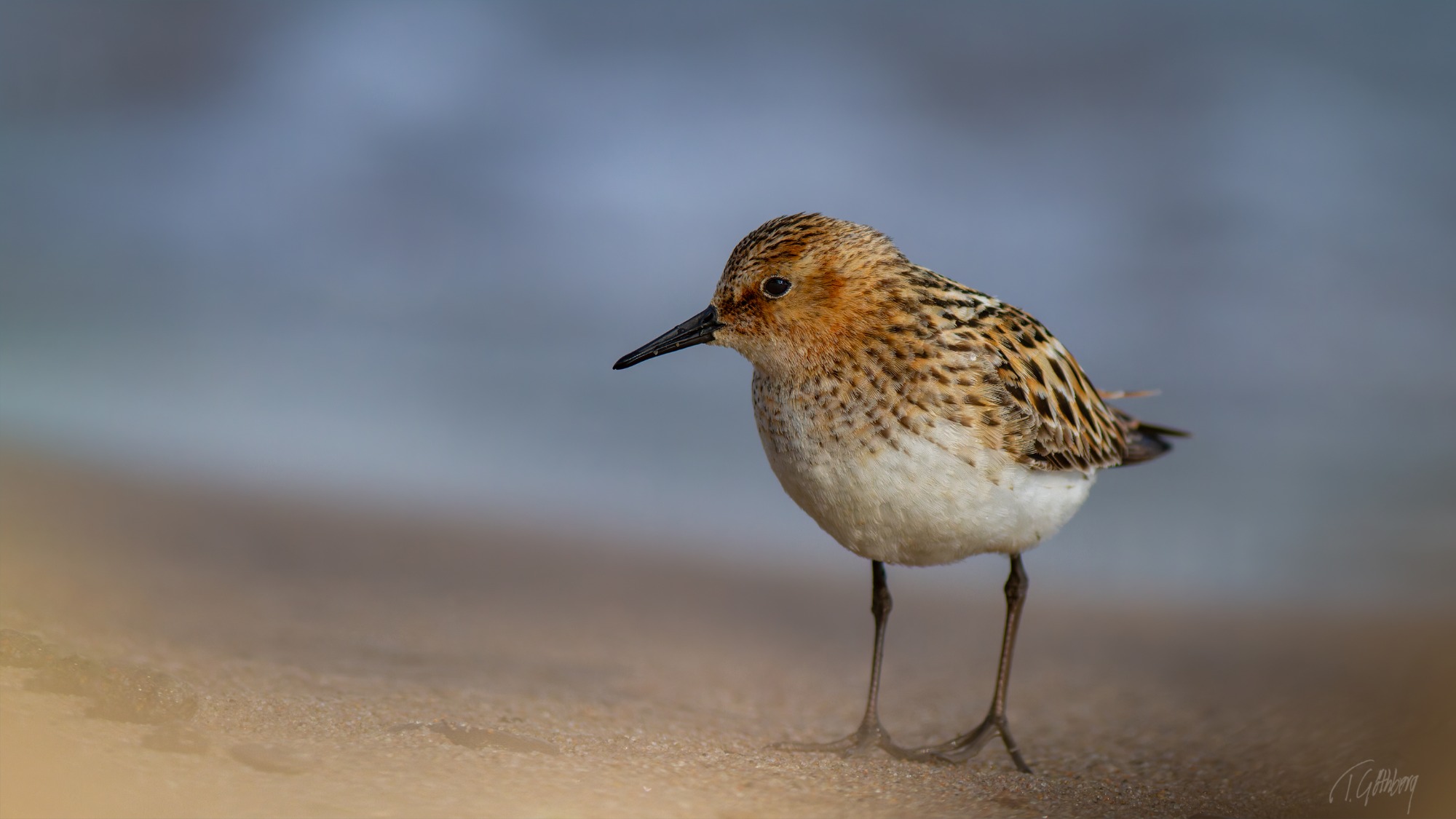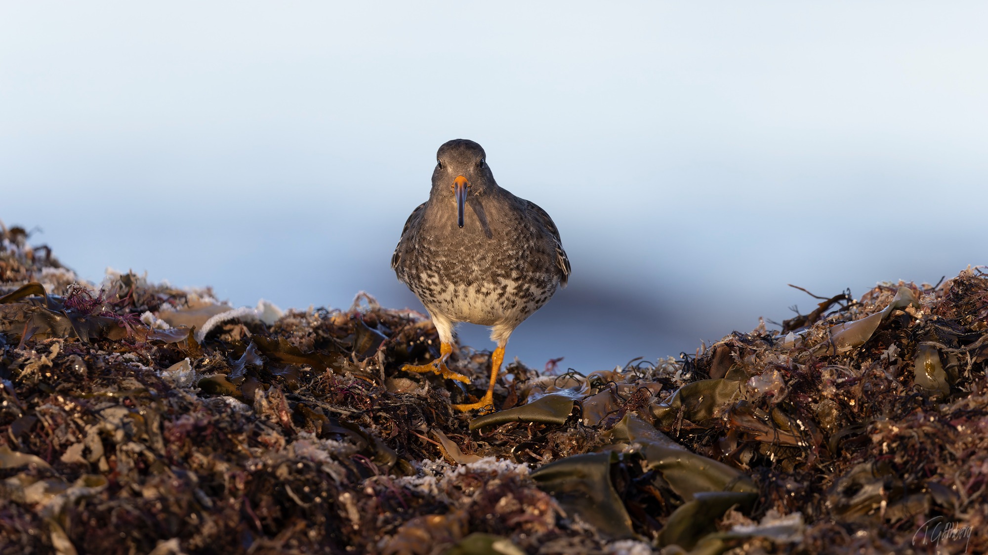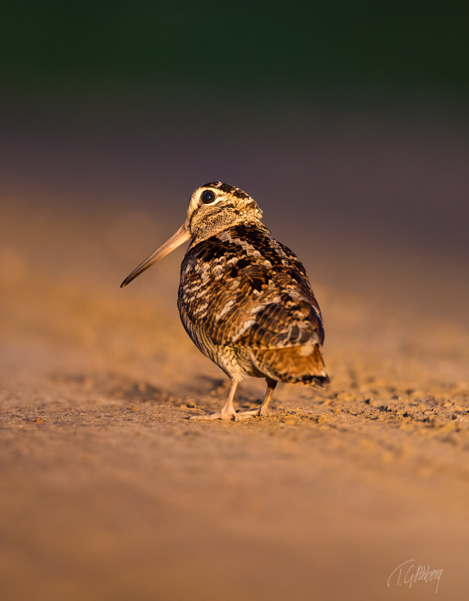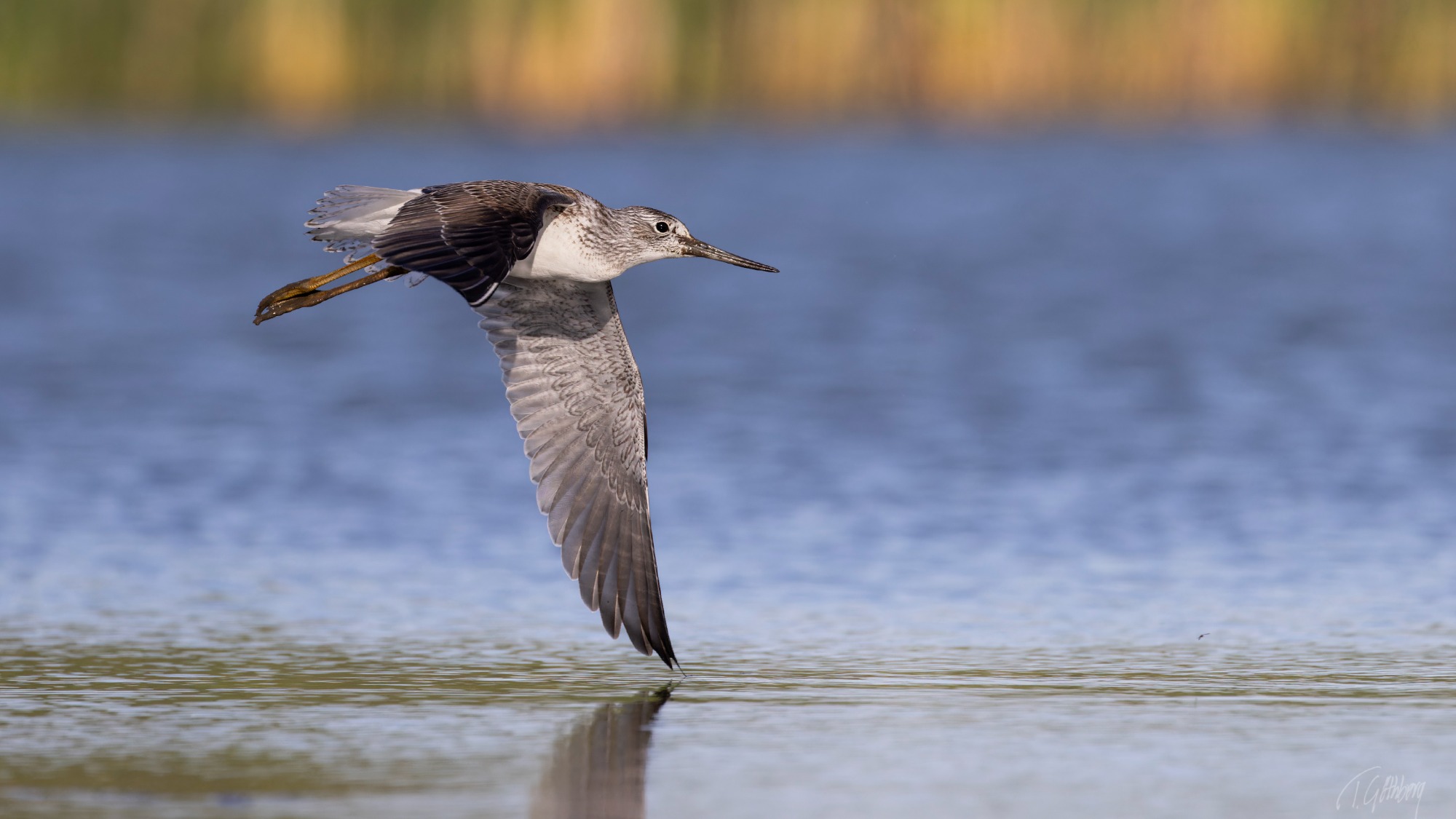 Under den blå timmen, innan solens strålar färgar vattnet, vilar skogssnäppan tyst vid strandkanten.