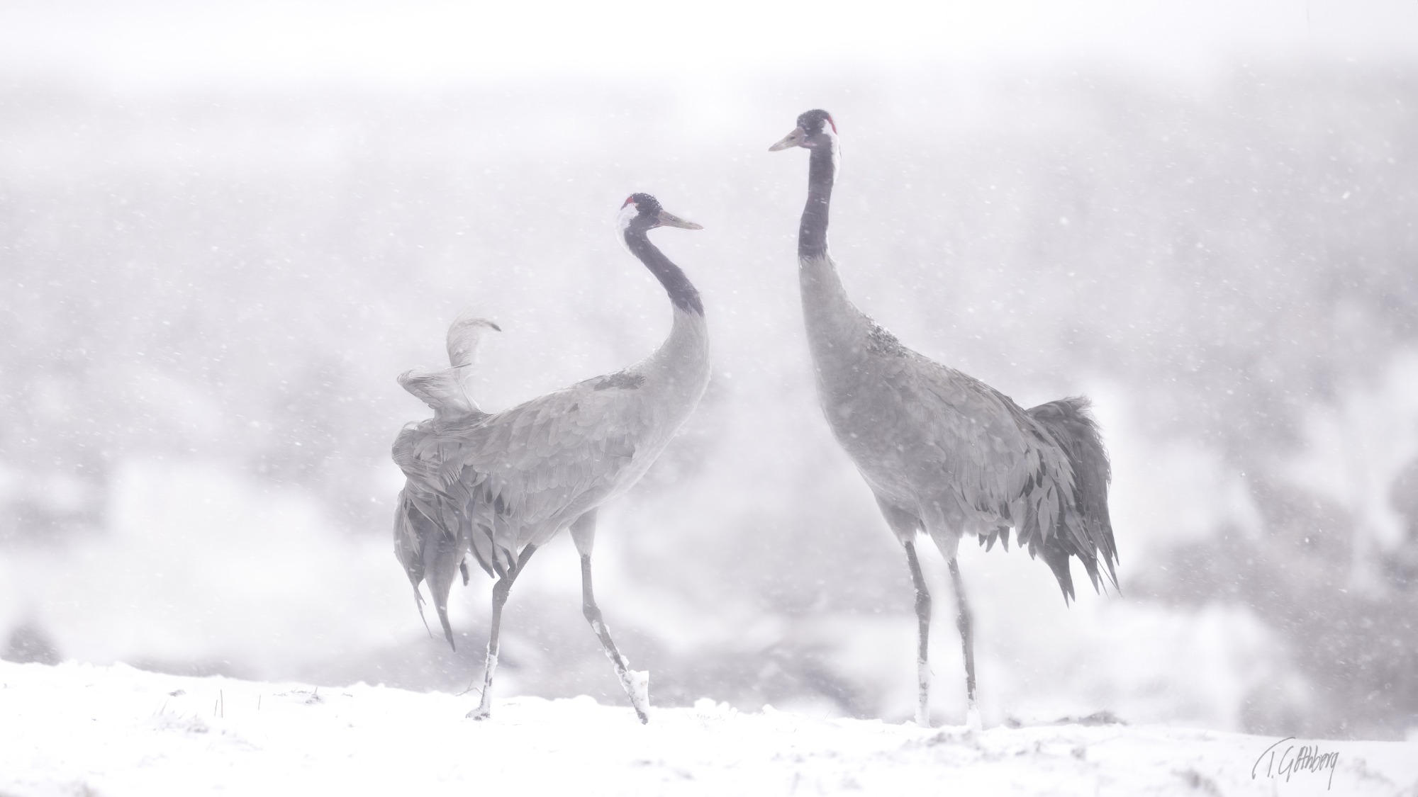 Det är tidig april, 05.30 på morgonen. Luften är klar och kall, andedräkten syns från tranornas näbbar — dansen har satt igång.