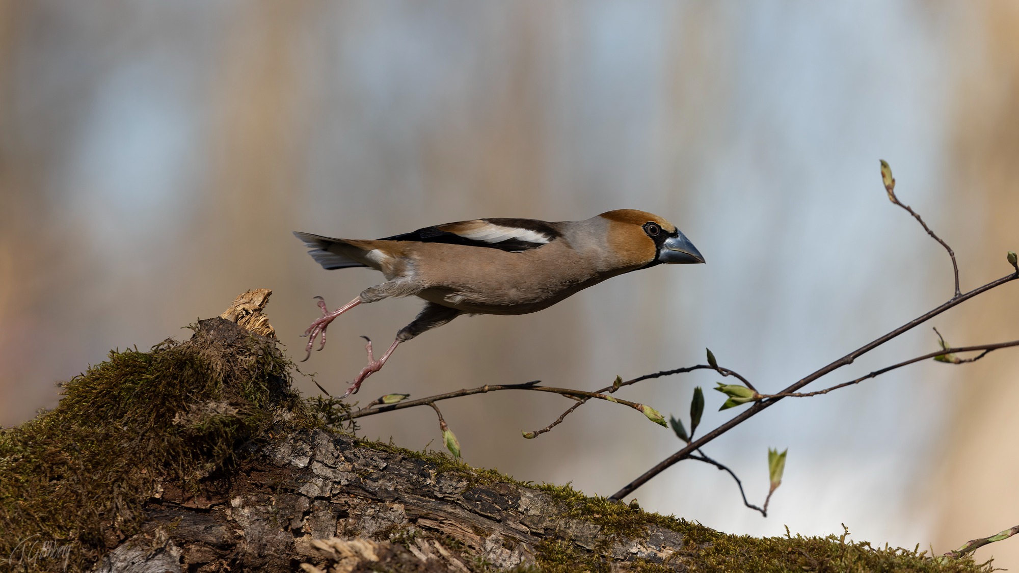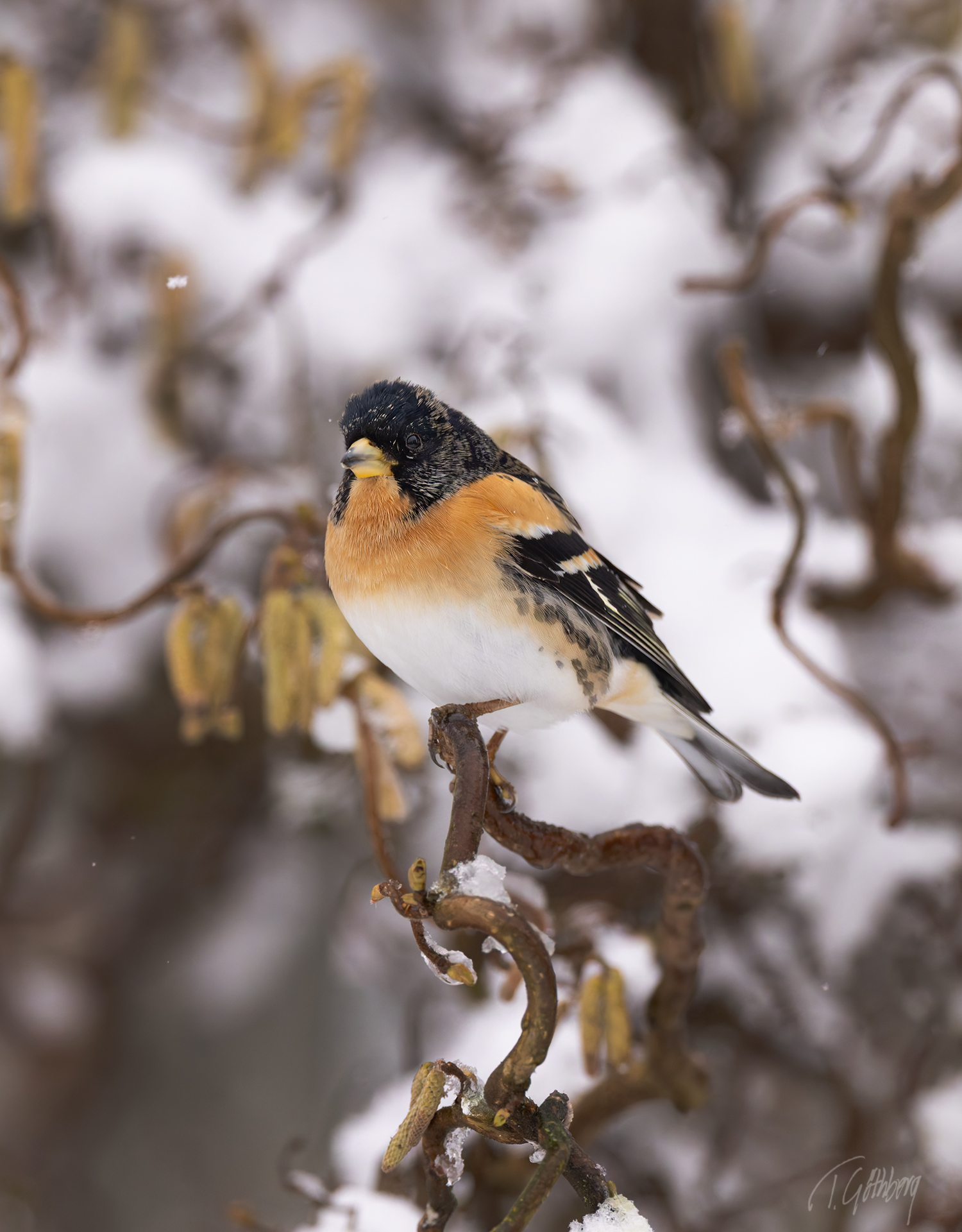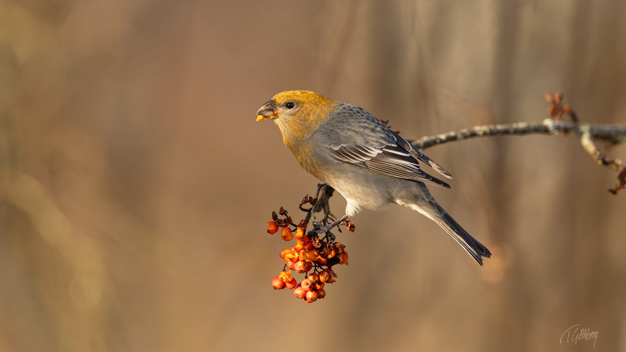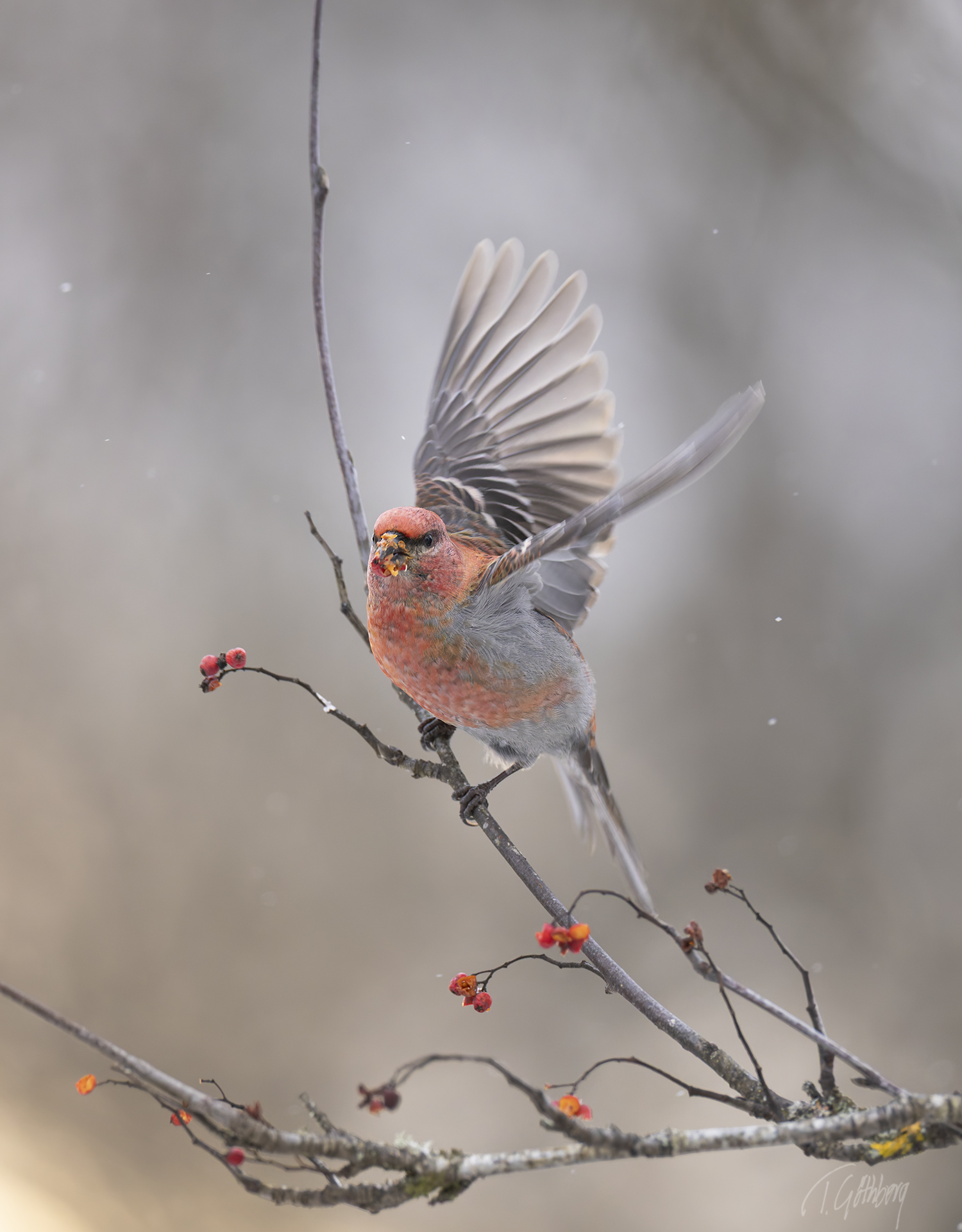 I det rimfrostklädda landskapet har tallbitshanen funnit sitt mål – ett rönnbärsträd fyllt av hans älskade frön.