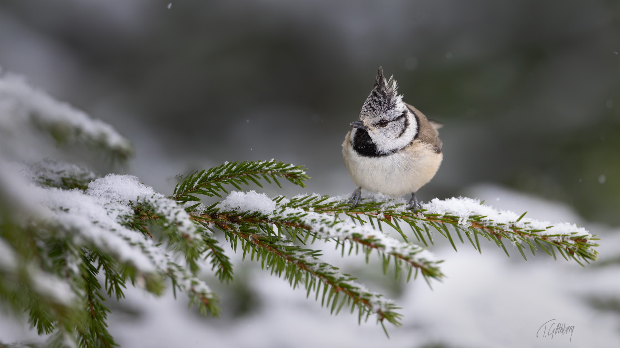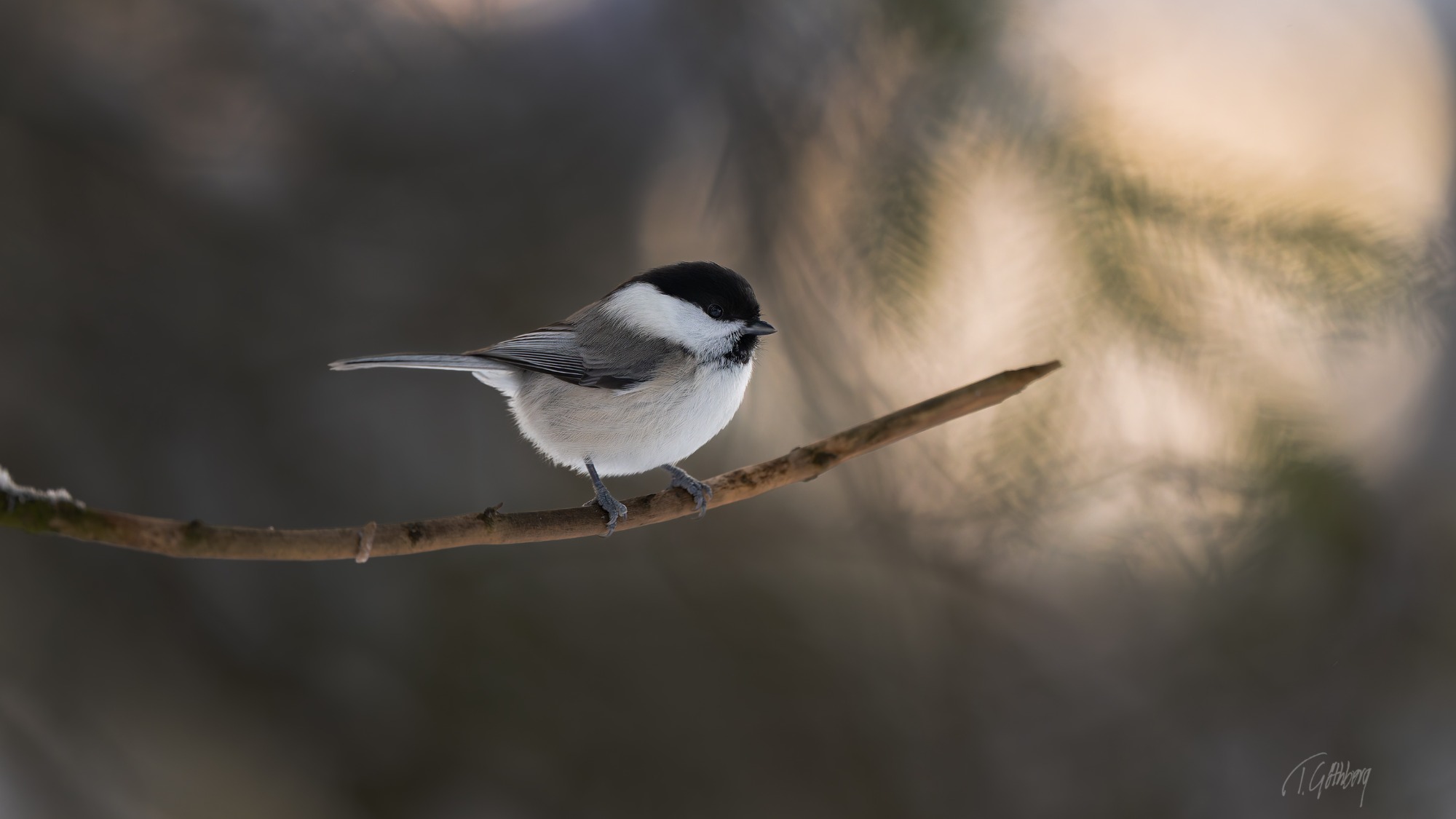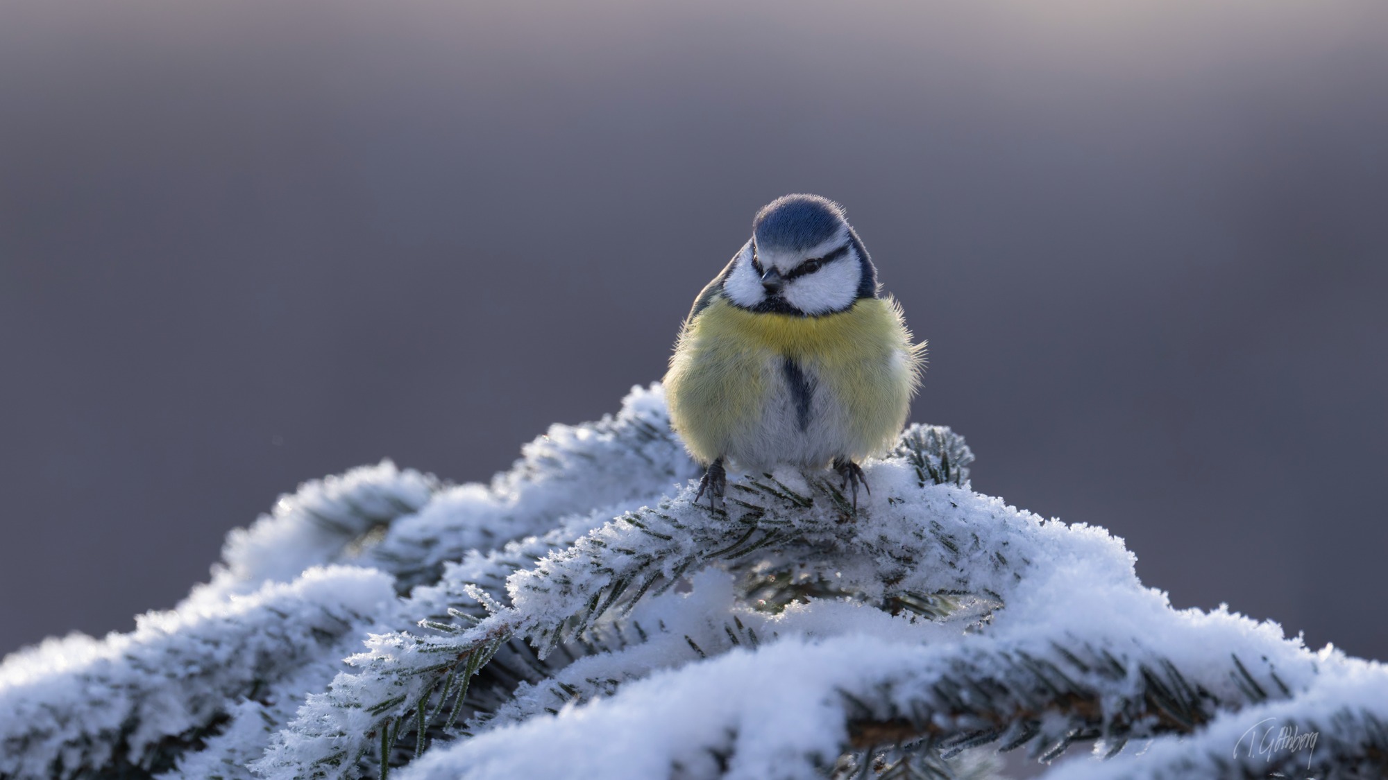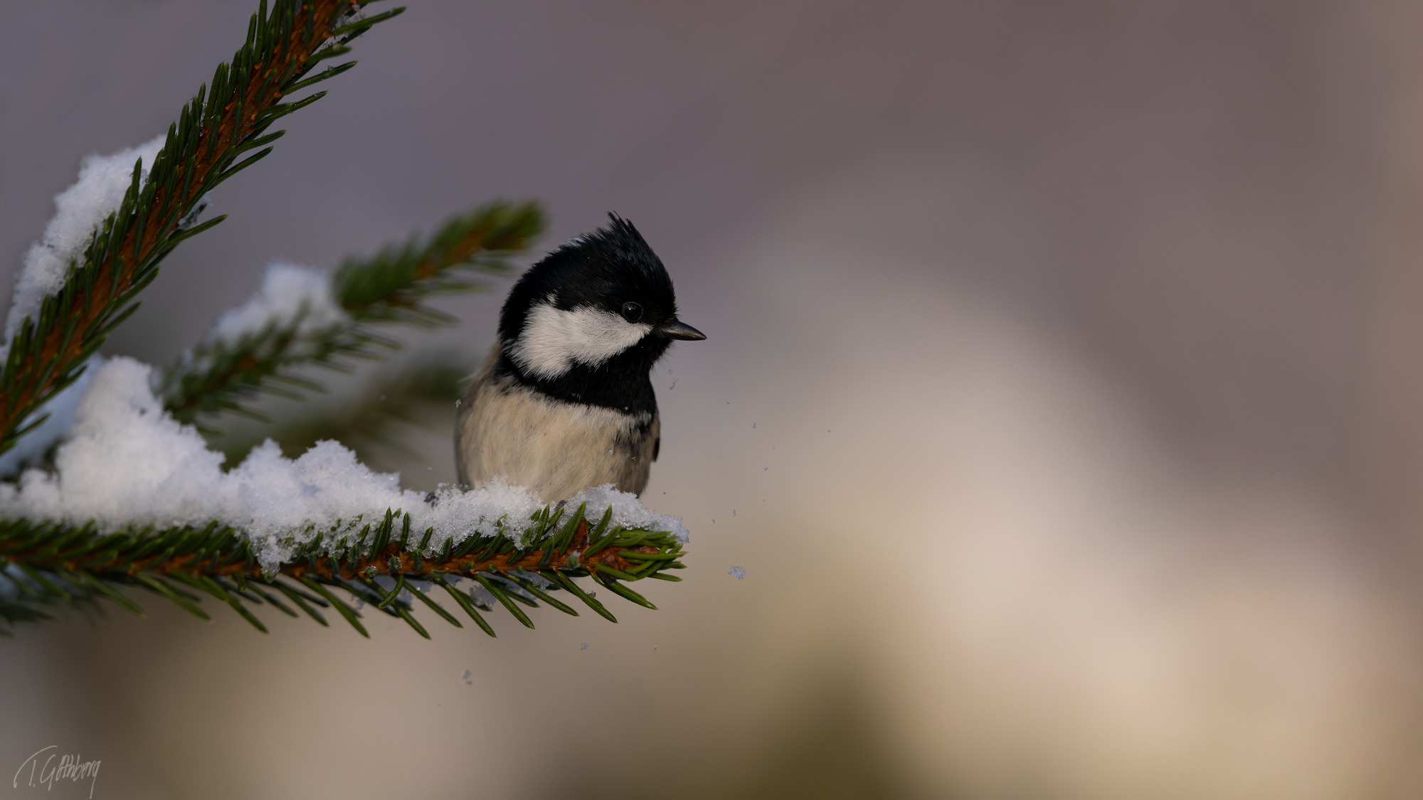 I december är ljuset knappt, och i skogen känns dagarna särskilt mörka. Ett svagt ljus i bakgrunden ger ändå motivet – talltitan – liv.