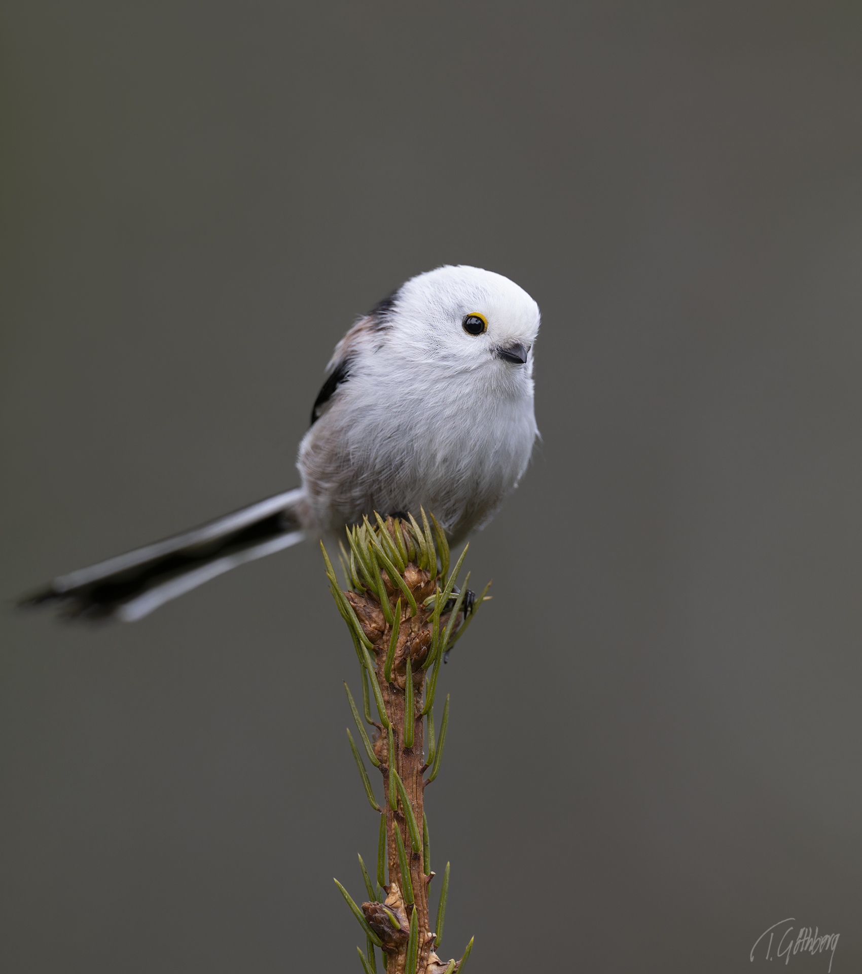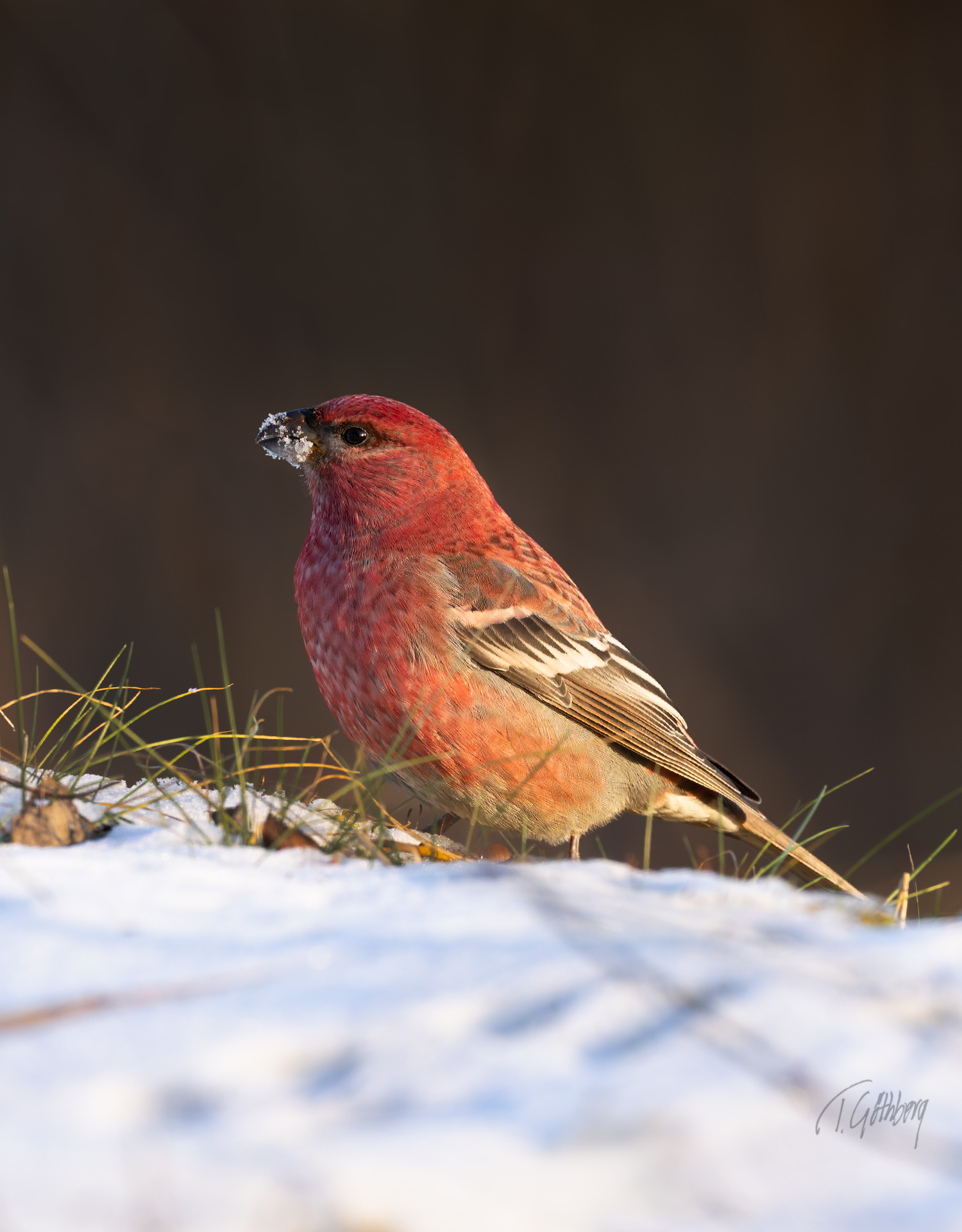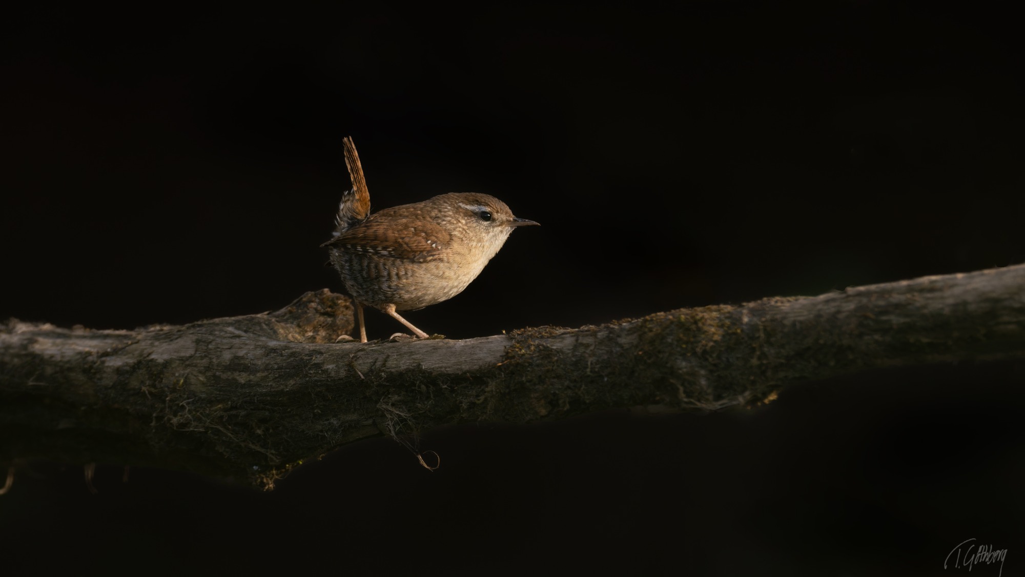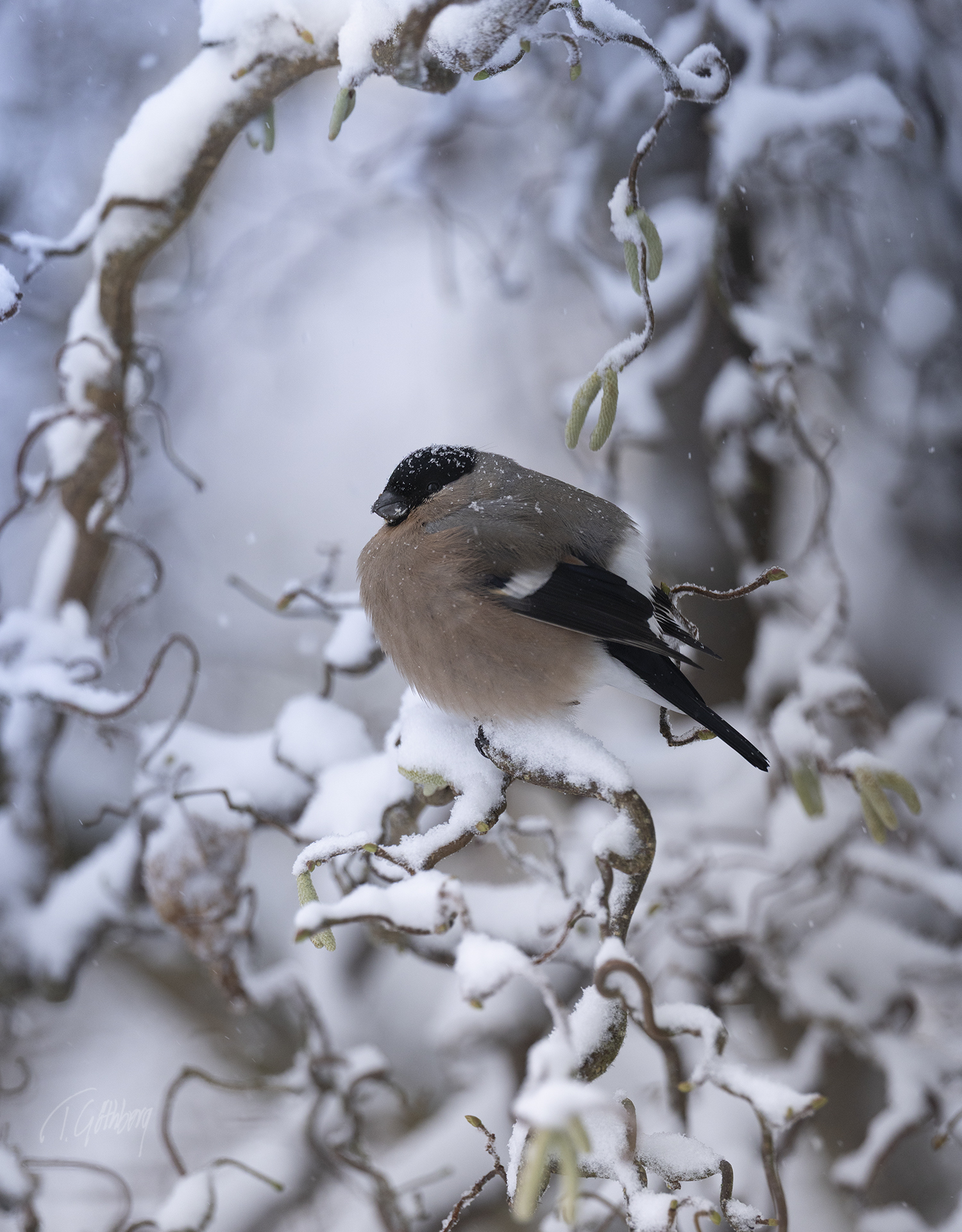 I december är ljuset knappt, och i skogen känns dagarna särskilt mörka. Ett svagt ljus i bakgrunden ger ändå motivet – talltitan – liv.
